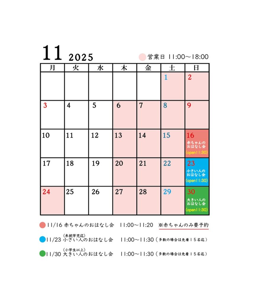 【 11月のおはなし会スケジュール 】