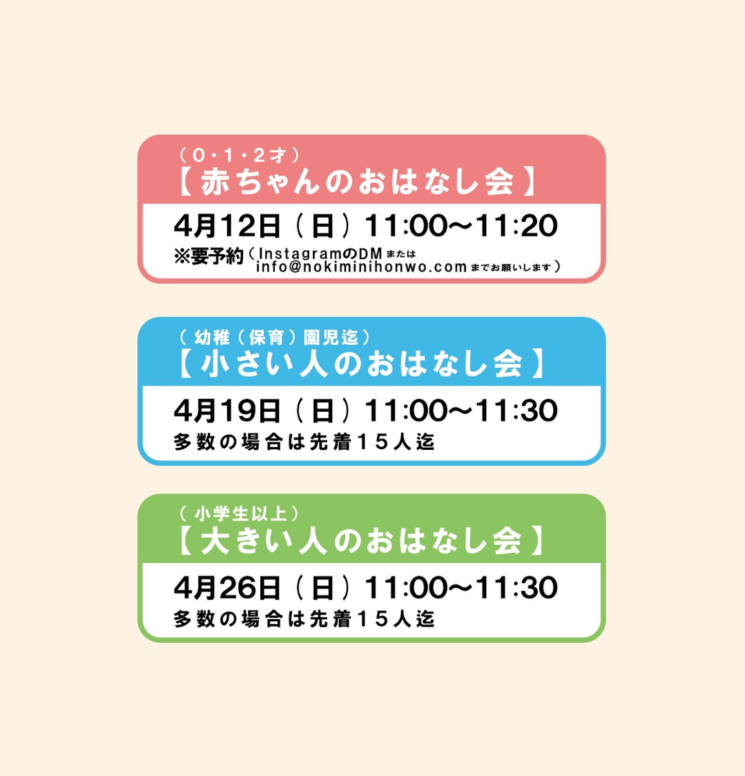 ⚠️おはなし会の日はお店のopenが11:30からとなっておりますのでご注意くださいね。